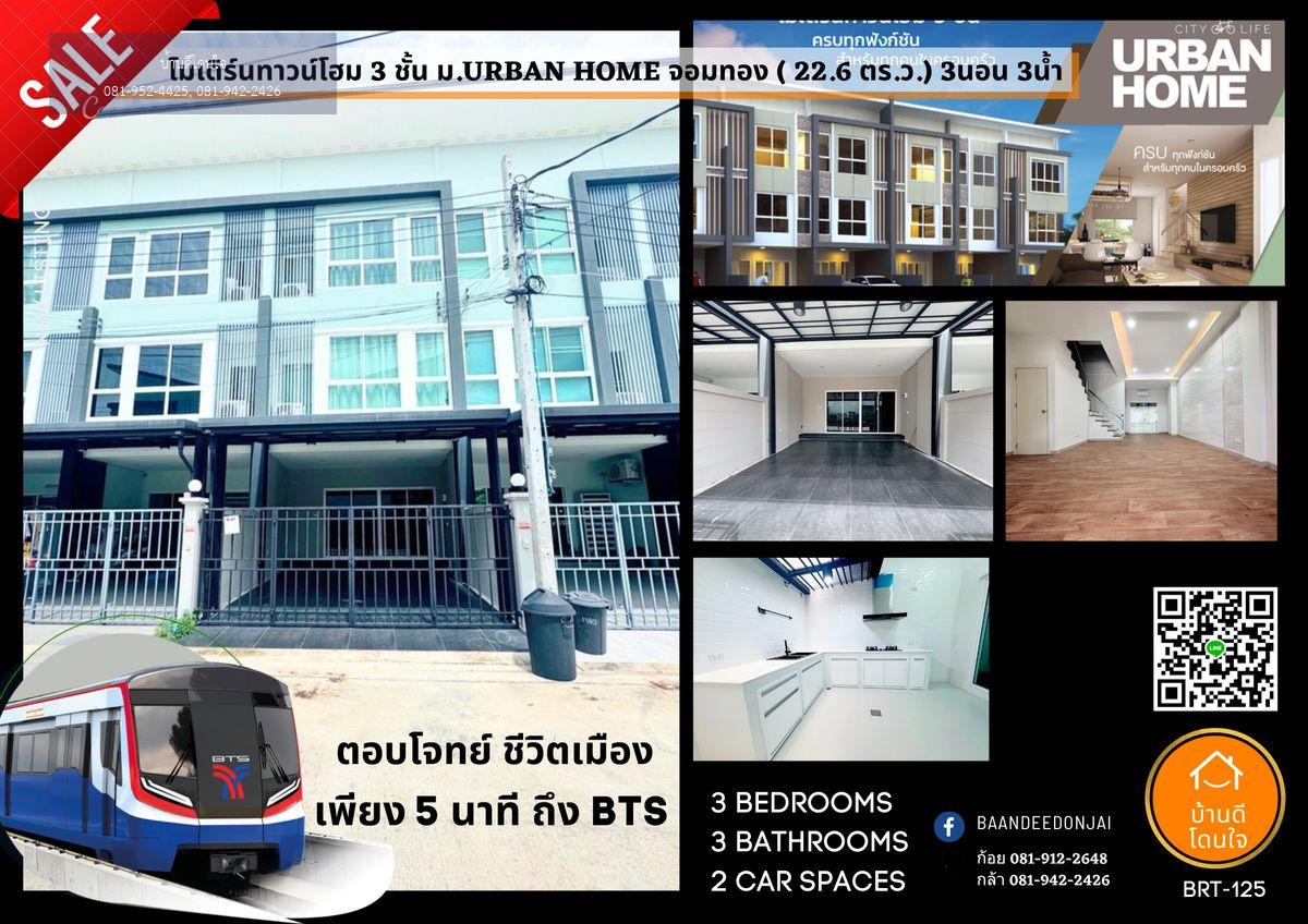 โมเดิร์นทาวน์โฮม 3 ชั้น ฟังก์ชันครบ ใจกลางจอมทอง Urban Home จอมทอง | ใกล้ BTS ตลาดพลู / MRT ท่าพระ