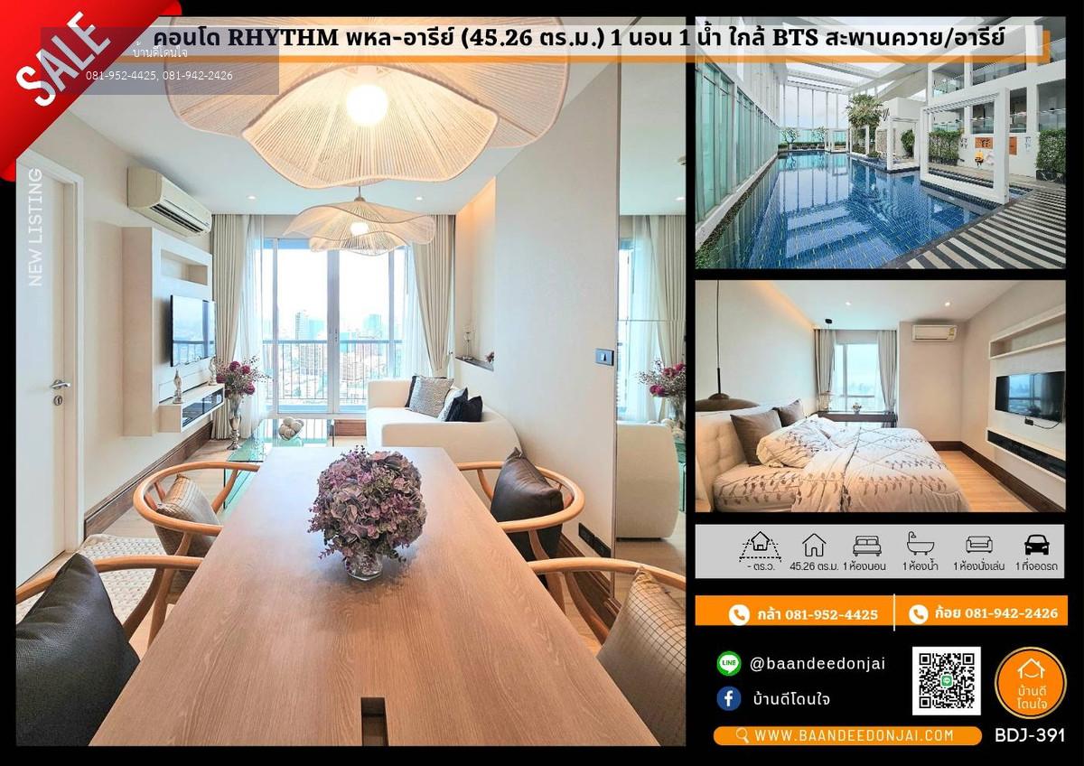 ห้องสวยพร้อมอยู่ Rhythm พหล-อารีย์ (45.26 ตร.ม.) 1 ห้องนอน ใกล้ BTS อารีย์
