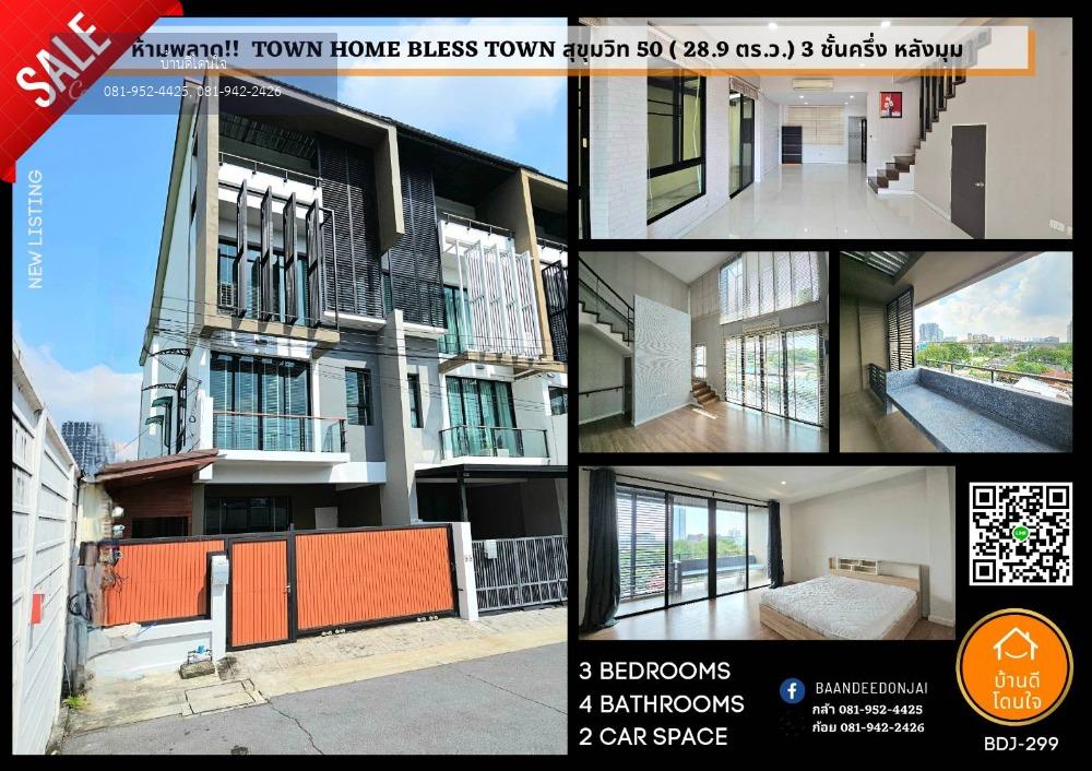 Dont miss!! Townhome Bless Town Sukhumvit 50 (28.9 sq m.) 3 bedrooms, 4 bathrooms, corner house, near BTS On Nut