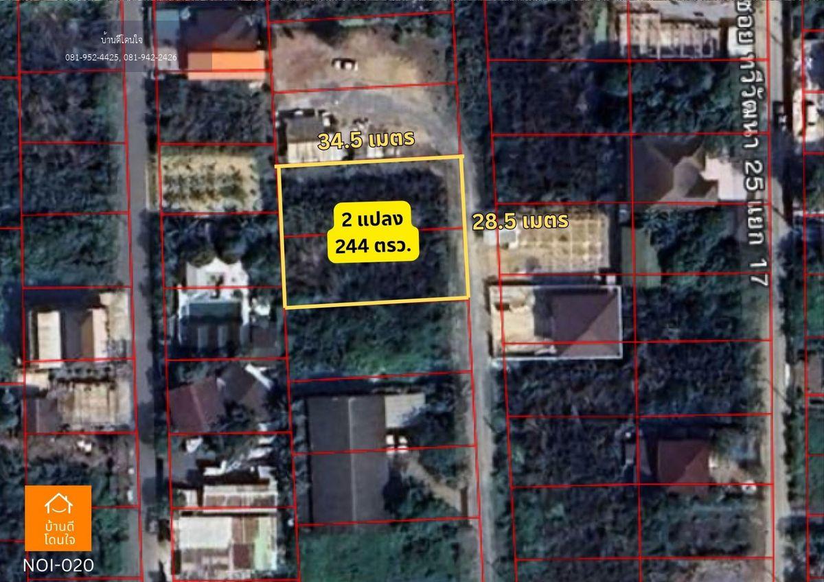 - ขนาด 244 ตรว. (2 แปลงๆ ละ 122 ตรว.) ถนนลาดยางแล้ว